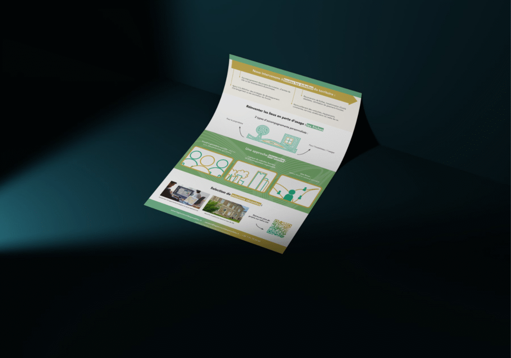 Nicolas avait un besoin très global, nous avons donc réalisé ensemble une identité visuelle pertinente à son projet et ses ambitions, un site internet moderne et communicant pour parler de ses activités, des supports de communication à distribuer lors des rendez-vous (cartes de visites, plaquette), des supports de présentation pour ses interventions orales, ainsi qu’une refonte de sa page LinkedIn personnelle, et des visuels pour la page du Gisement des possibles.